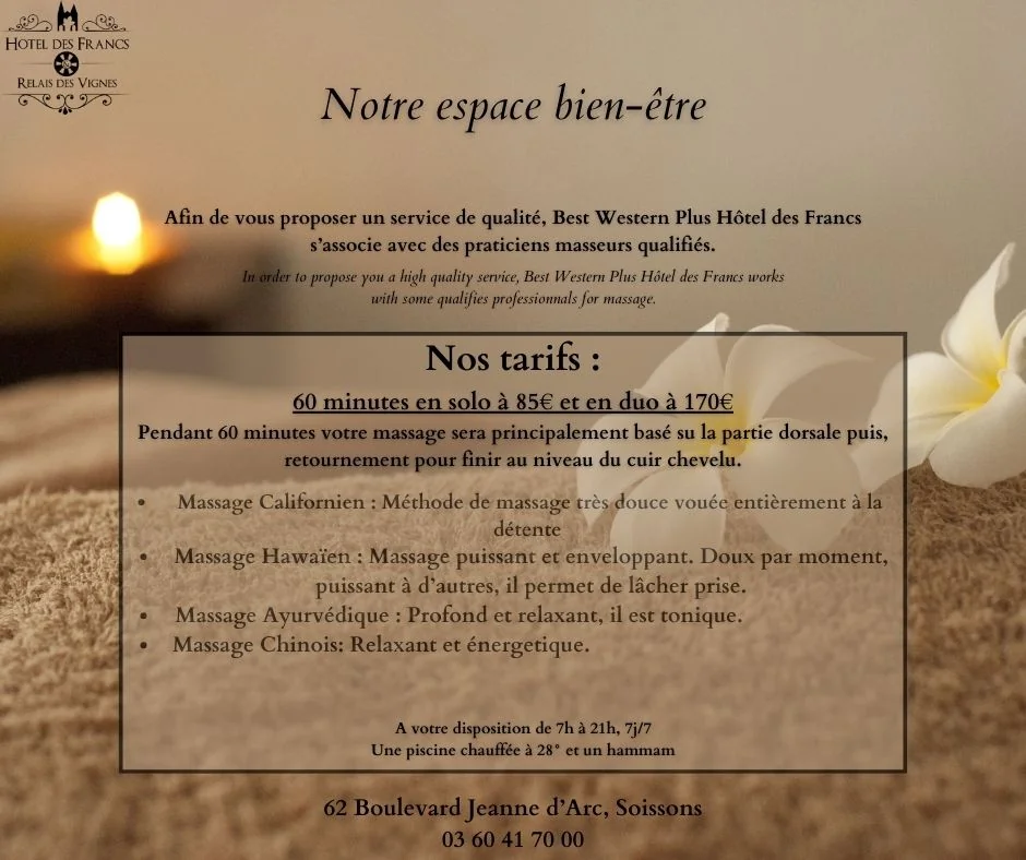 Le Best Western Plus vous propose dorénavant des massages bien-Etre ou des Soins Relaxants.
